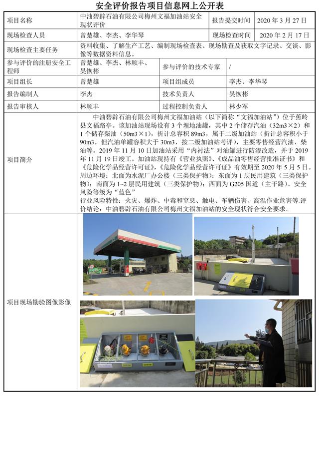 中油碧辟石油有限公司梅州文福加油站安全现状评价