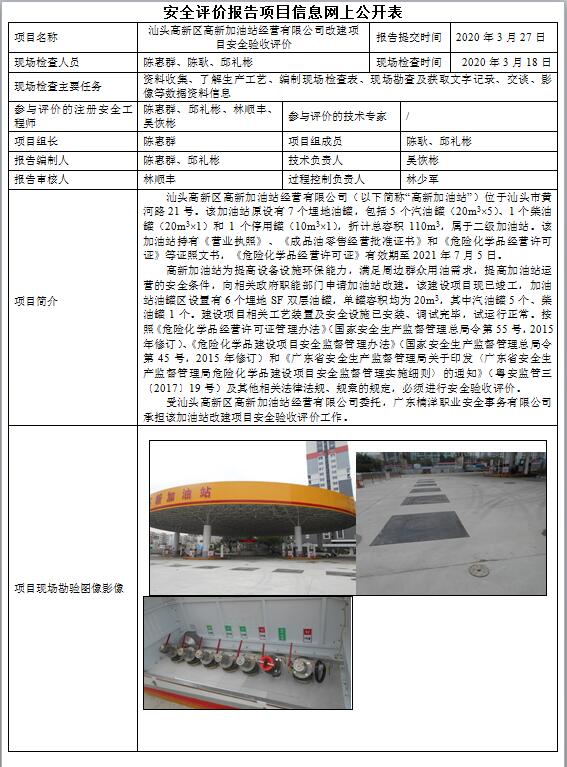 汕头高新区高新加油站经营有限公司改建项目安全验收评价