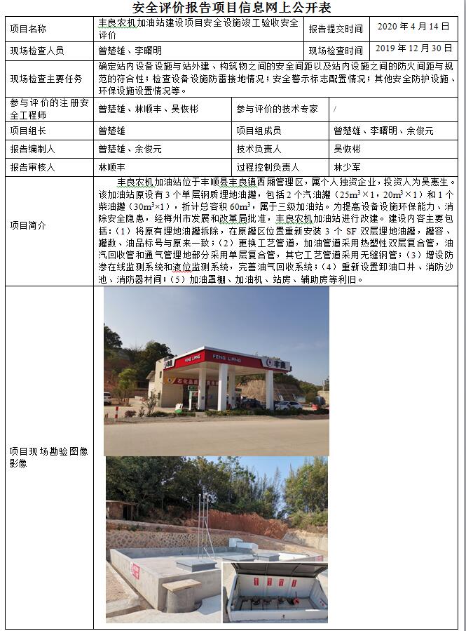丰良农机加油站建设项目安全设施竣工验收安全评价