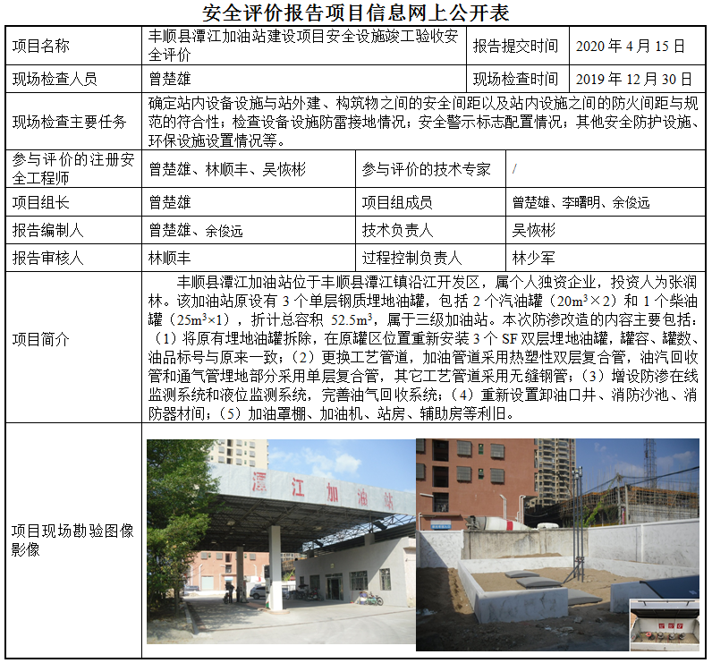丰顺县潭江加油站建设项目安全设施竣工验收安全评价