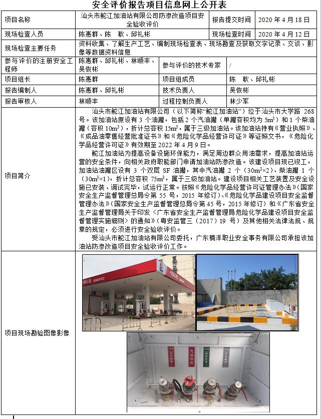 汕头市鮀江加油站有限公司防渗改造项目安全验收评价