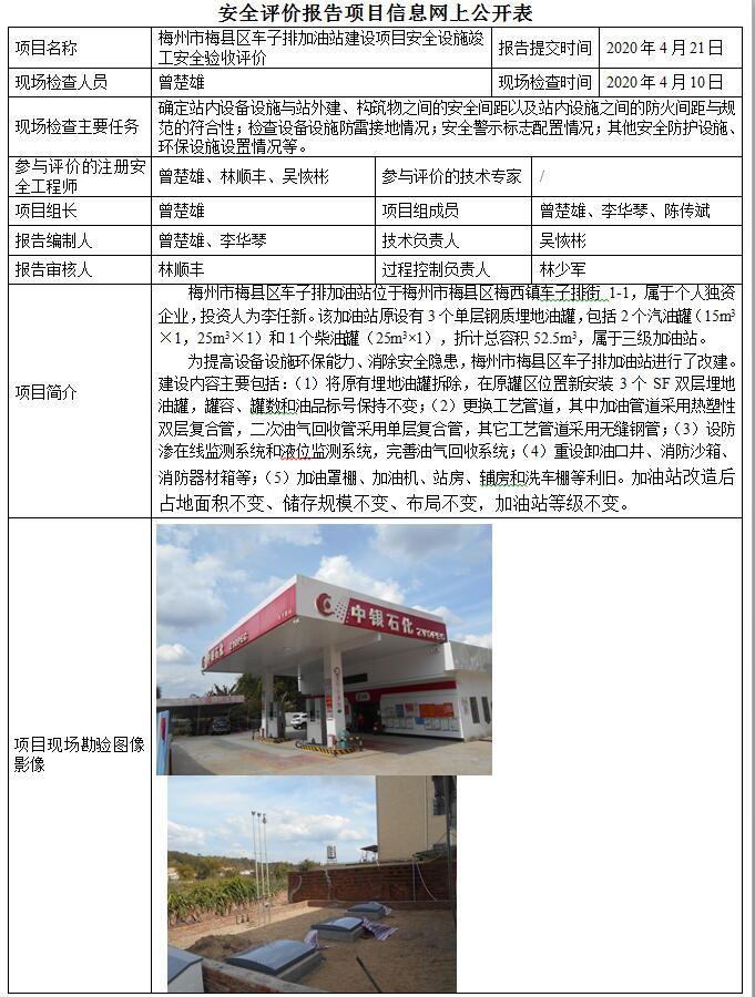 梅州市梅县区车子排加油站建设项目安全设施竣工安全验收评价