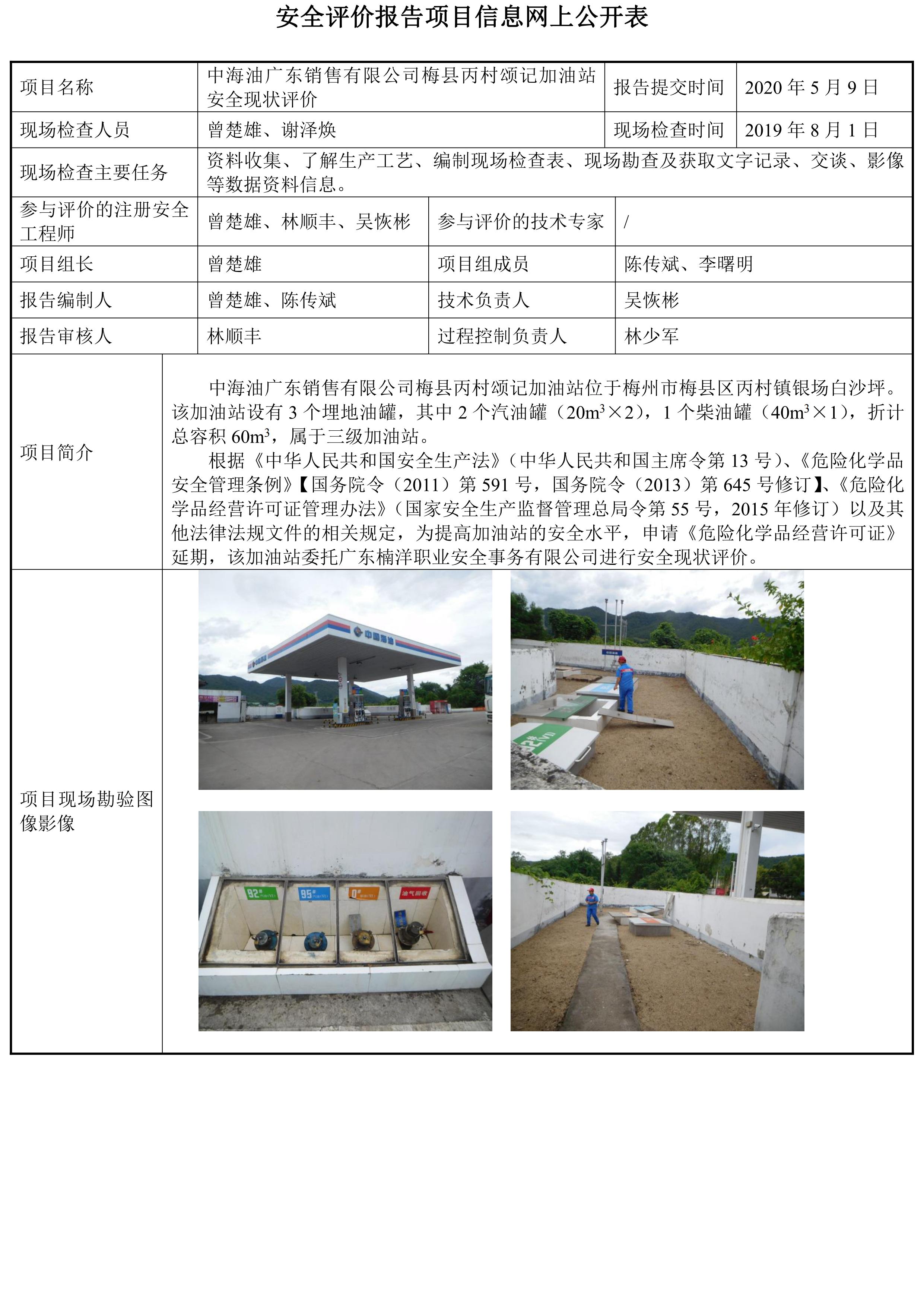 中海油广东销售有限公司梅县丙村颂记加油站安全现状评价