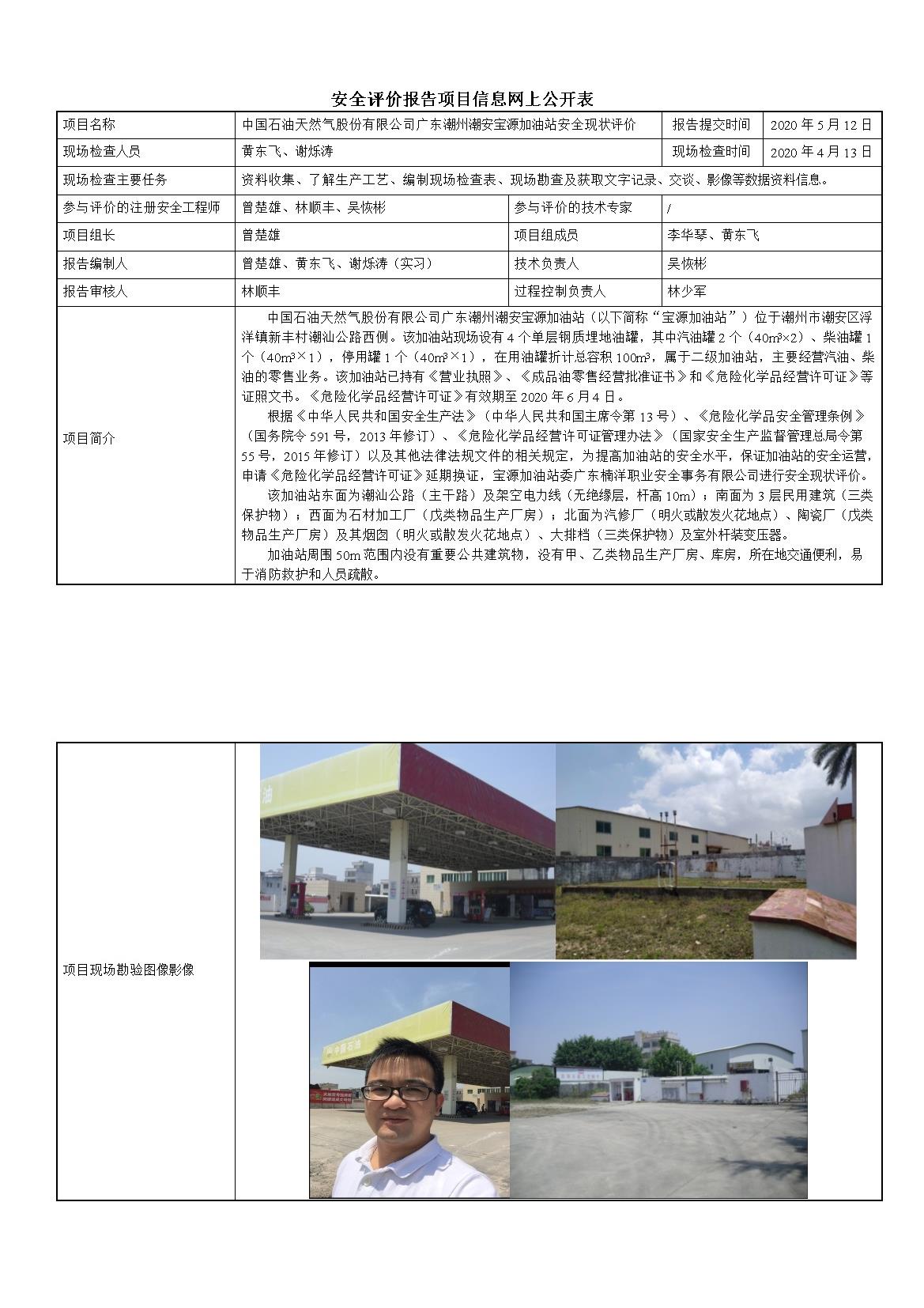 中国石油天然气股份有限公司广东潮州潮安宝源加油站安全现状评价