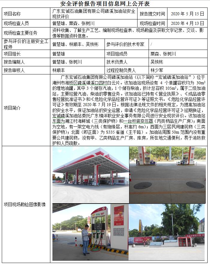 广东宏诚石油集团有限公司磷溪加油站安全现状评价