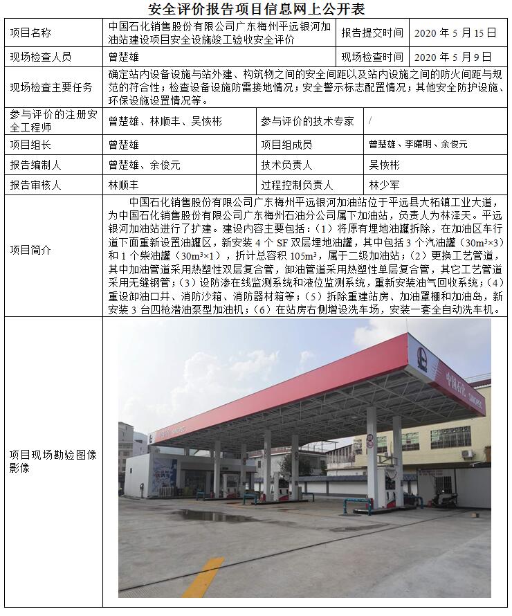 中国石化销售股份有限公司广东梅州平远银河加油站建设项目安全设施竣工验收安全评价