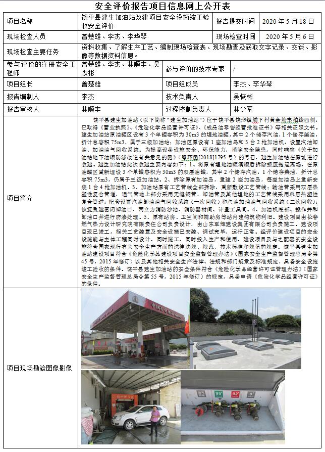 饶平县建生加油站改建项目安全设施竣工验收安全评价