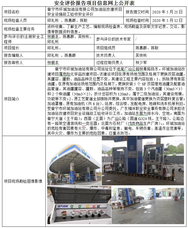普宁市环城加油站有限公司加油站改建项目安全设施竣工验收安全评价
