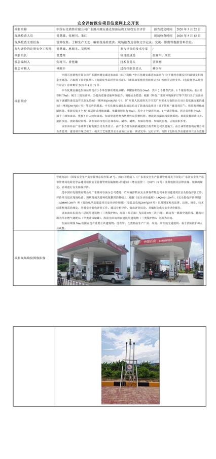 中国石化销售有限公司广东潮州潮安盛达加油站防渗改造项目安全设施竣工验收安全评价