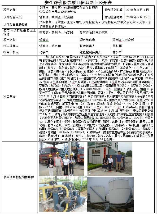 揭阳市广泰发实业有限公司经营危险化学品安全现状评价