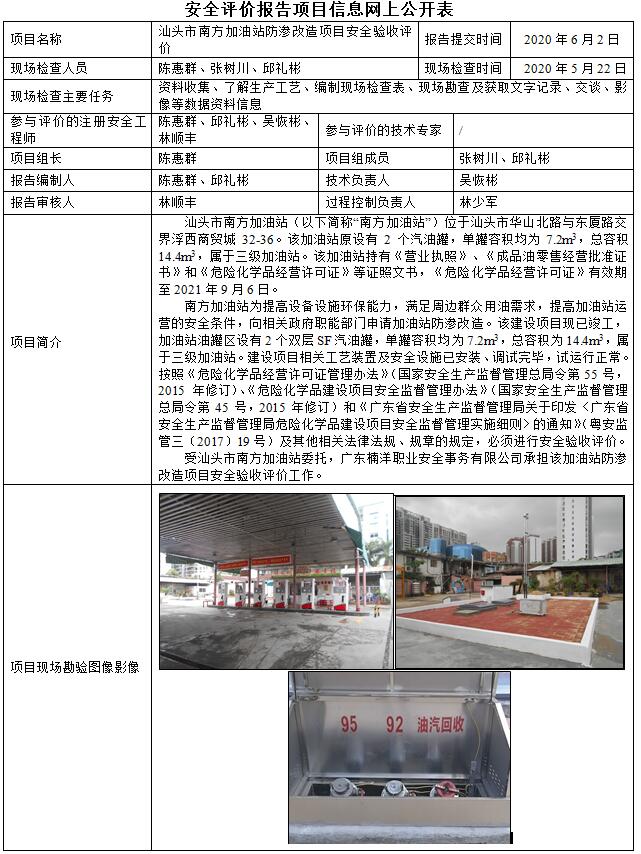 汕头市南方加油站防渗改造项目安全设施竣工验收安全评价