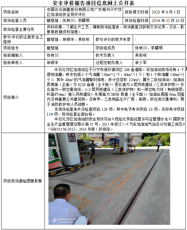 中国石化销售股份有限公司广东梅州兴宁郊区加油站安全现状评价