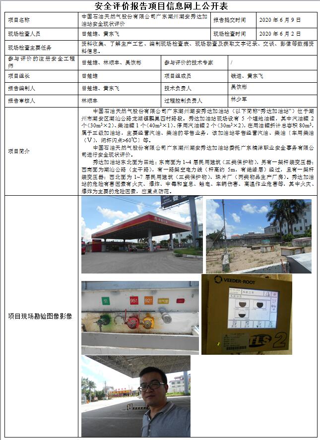中国石油天然气股份有限公司广东潮州潮安秀达加油站安全现状评价