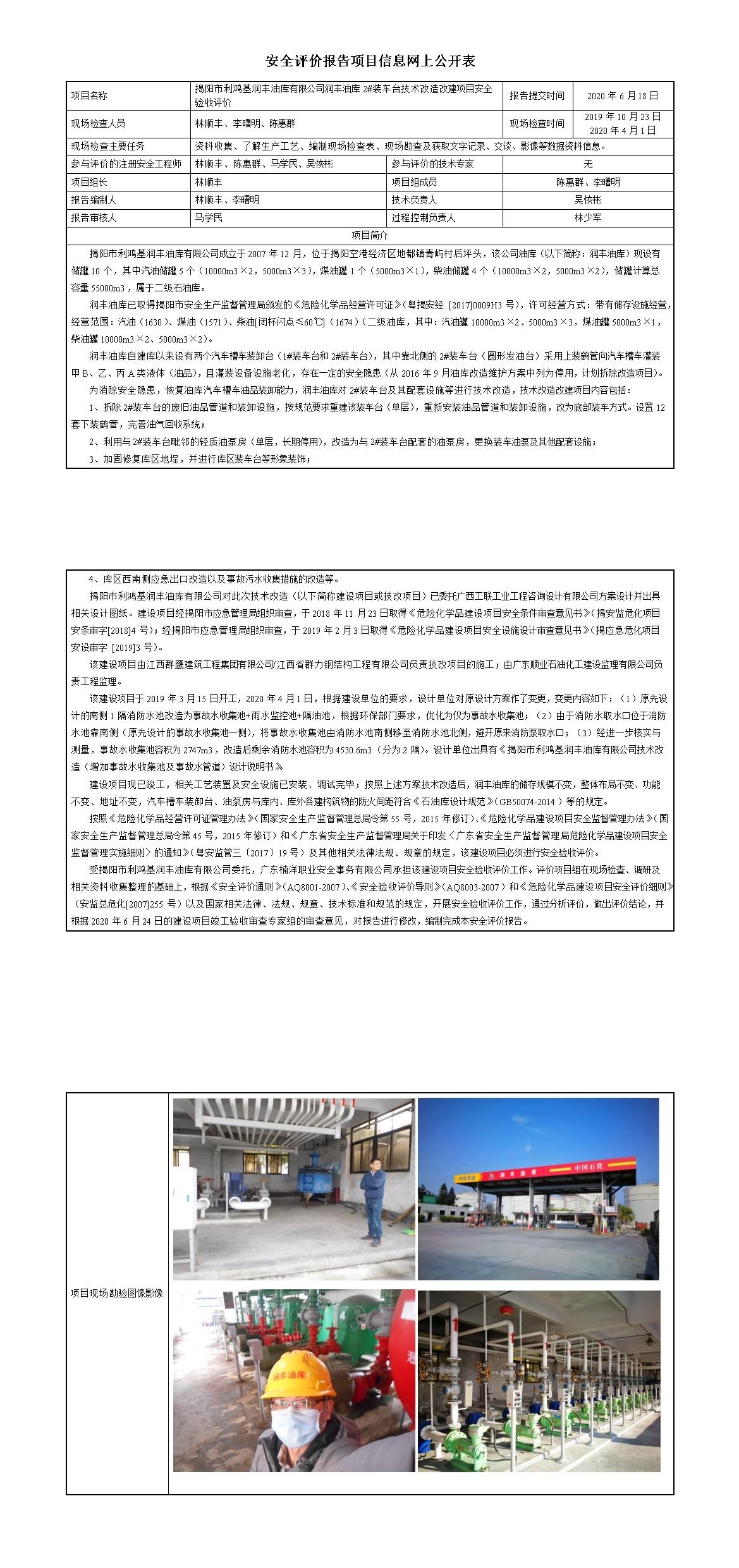 揭阳市利鸿基润丰油库有限公司润丰油库2#装车台技术改造改建项目安全验收评价