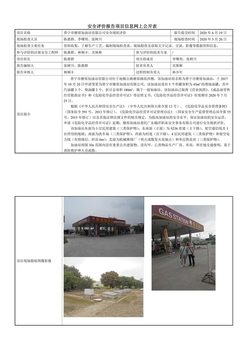 普宁市燎原加油站有限公司安全现状评价