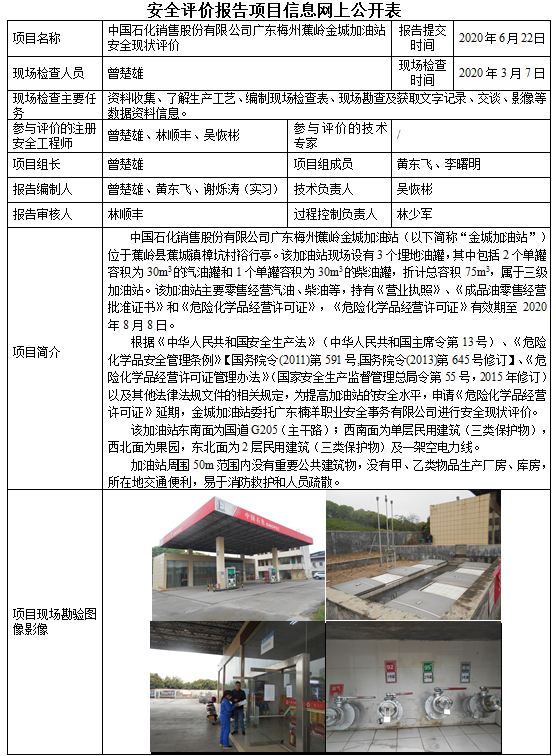 中国石化销售股份有限公司广东梅州蕉岭金城加油站安全现状评价