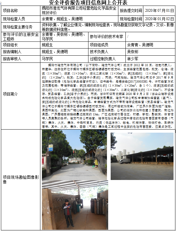 揭阳市港龙气体有限公司经营危险化学品安全现状评价