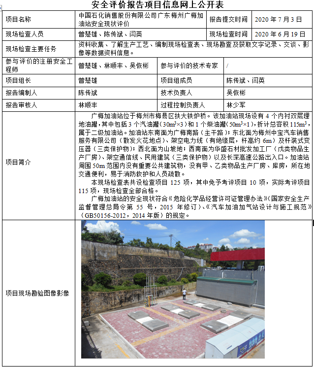 中国石化销售股份有限公司广东梅州广梅加油站安全现状评价