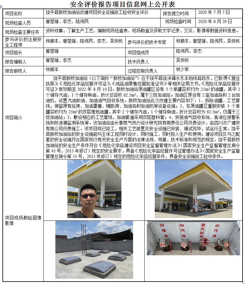 饶平县新桥加油站改建项目安全设施竣工验收安全评价