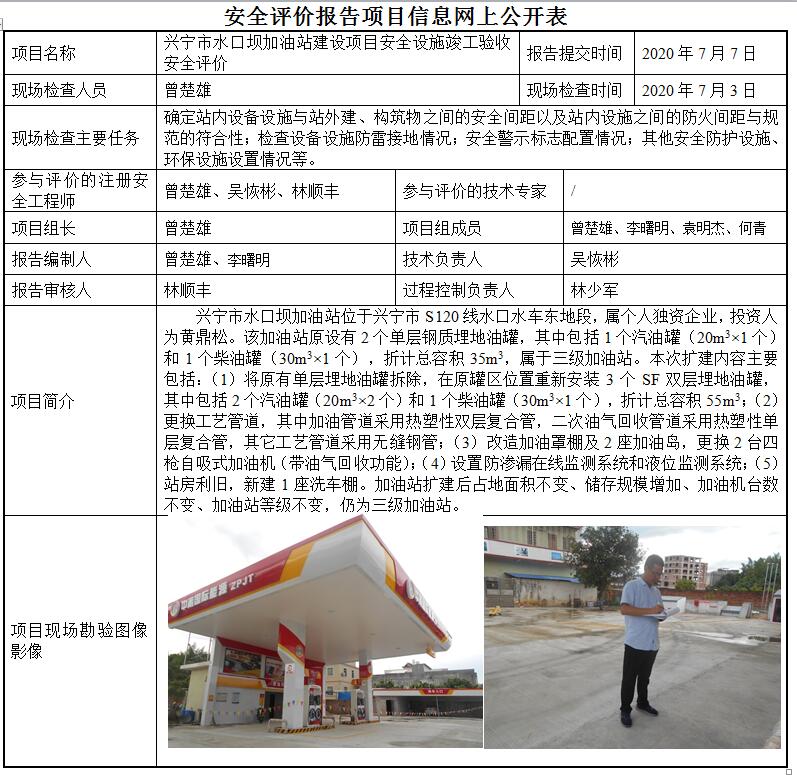 兴宁市水口坝加油站建设项目安全设施竣工验收安全评价