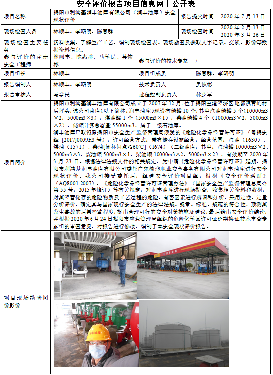 揭阳市利鸿基润丰油库有限公司(润丰油库)安全现状评价
