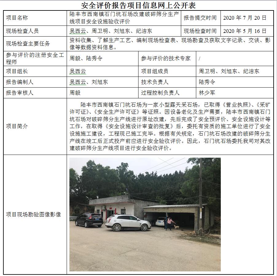 陆丰市西南镇石门坑石场安全验收评价