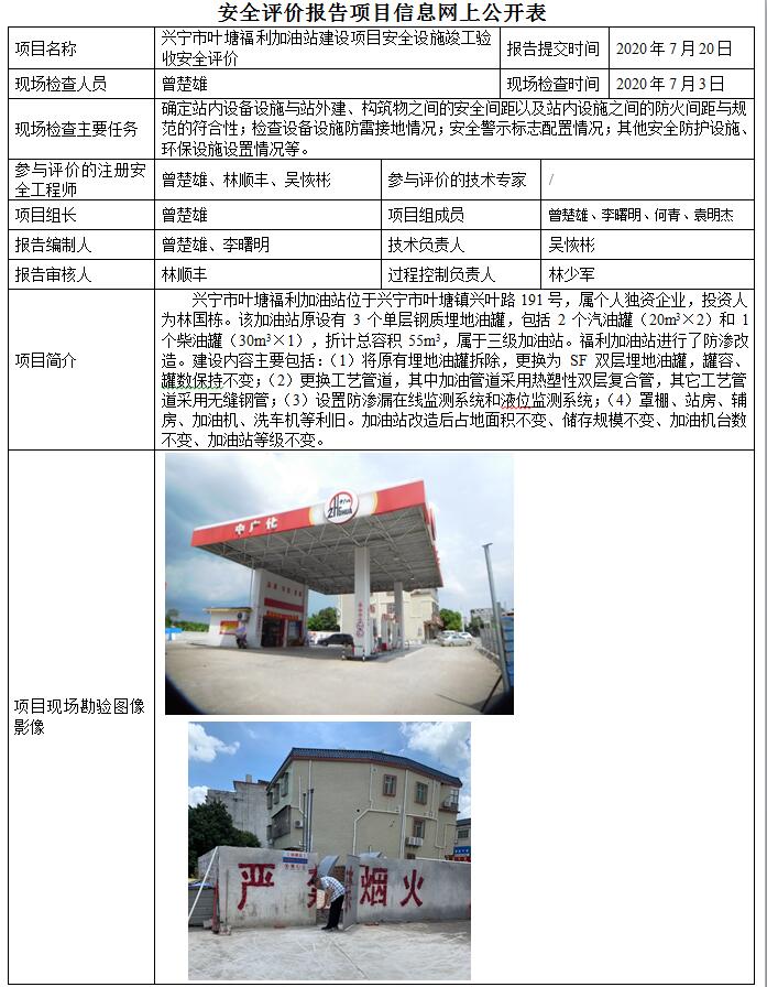 兴宁市叶塘福利加油站建设项目安全设施竣工验收安全评价