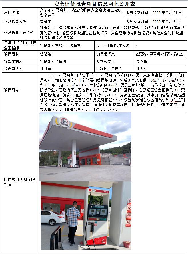 兴宁市石马镇加油站建设项目安全设施竣工验收安全评价