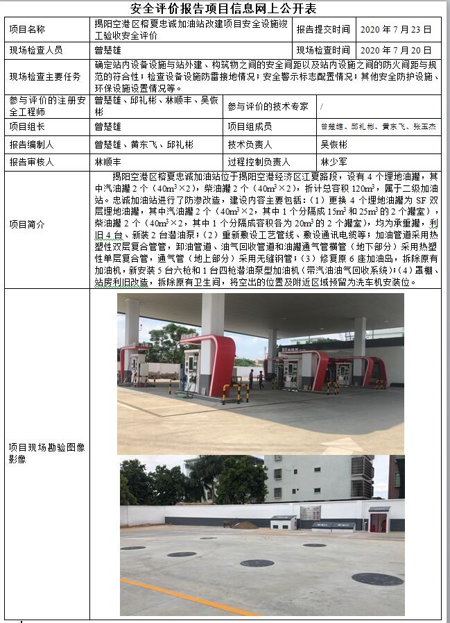 揭阳空港区榕夏忠诚加油站改建项目安全设施竣工验收安全评价