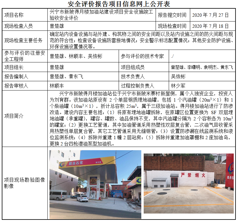 兴宁市新陂得月楼加油站建设项目安全设施竣工验收安全评价