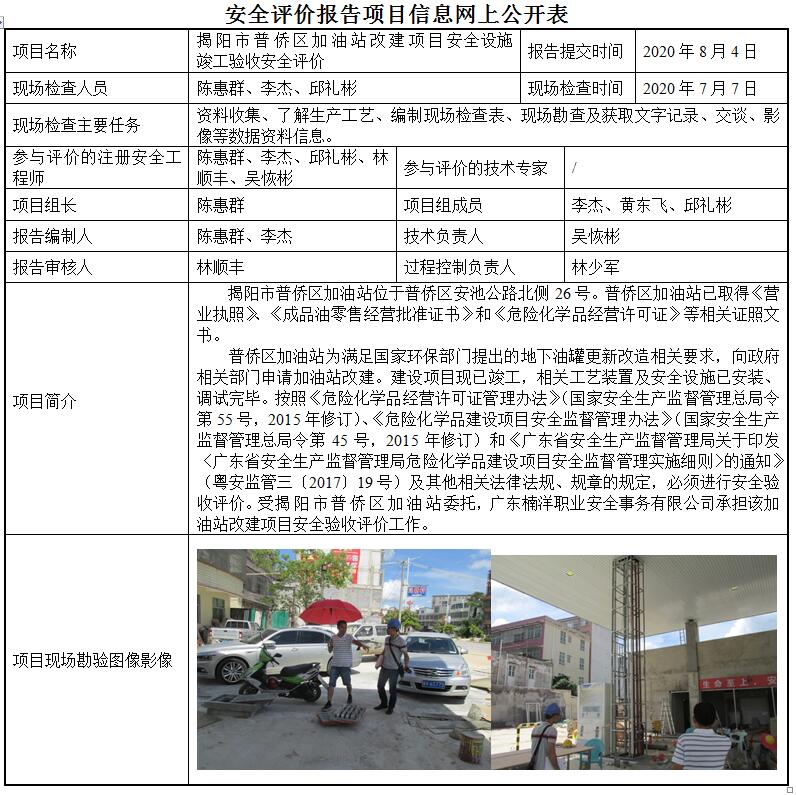 揭阳市普侨区加油站改建项目安全设施竣工验收安全评价