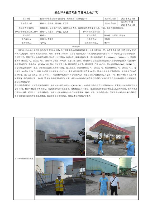 揭阳市中油油品经销有限公司(渔湖油库)安全现状评价
