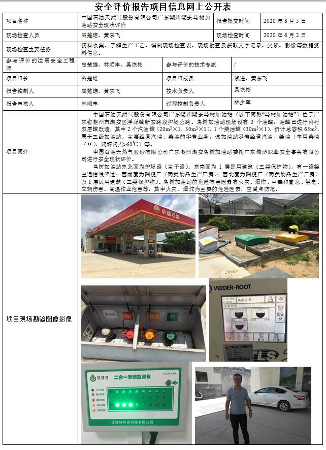 中国石油天然气股份有限公司广东潮州潮安乌树加油站安全现状评价