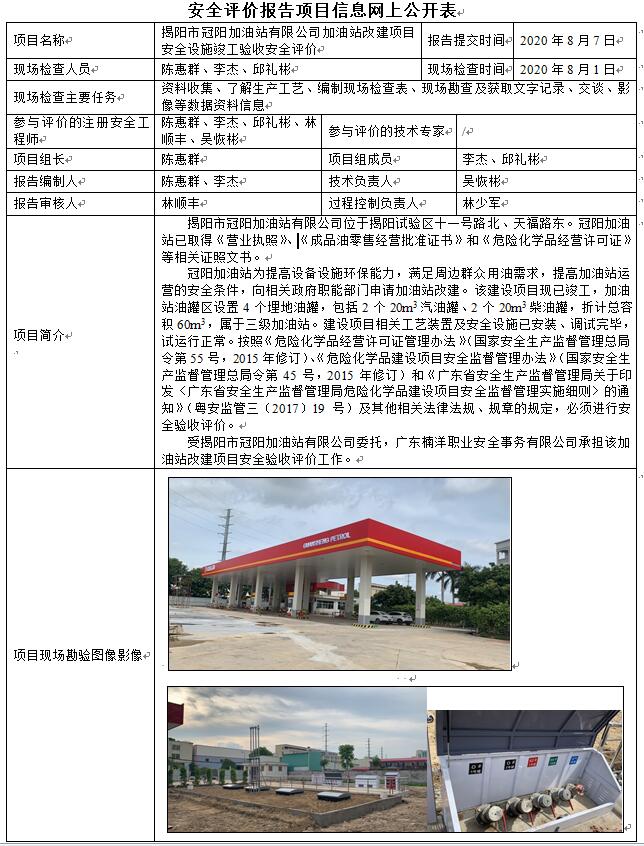 揭阳市冠阳加油站有限公司加油站改建项目安全设施竣工验收安全评价