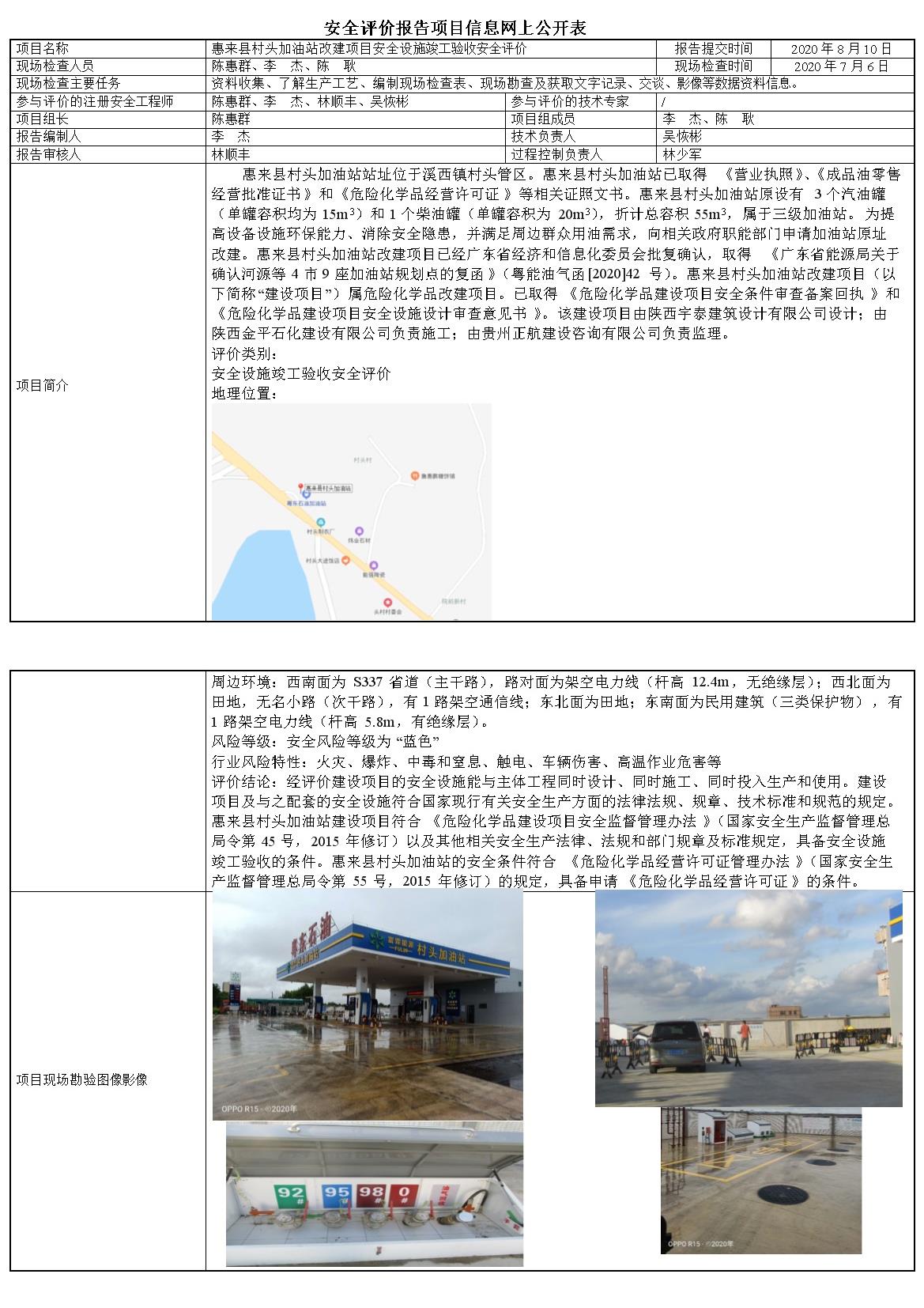 惠来县村头加油站改建项目安全设施竣工验收安全评价