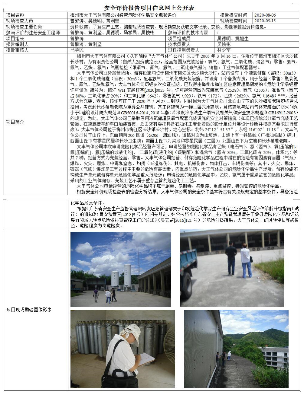 梅州市大丰气体有限公司经营危险化学品安全现状评价