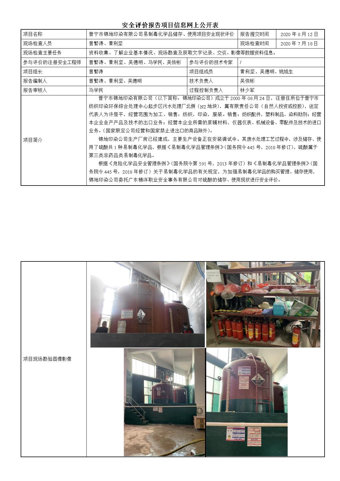 普宁市锦地印染有限公司易制毒化学品储存、使用项目安全现状评价