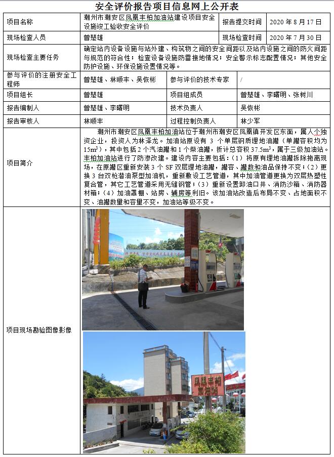 潮州市潮安区凤凰丰柏加油站建设项目安全设施竣工验收安全评价