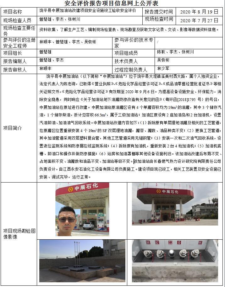 饶平县中展加油站改建项目安全设施竣工验收安全评价