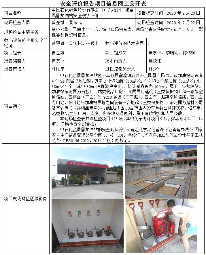 中国石化销售股份有限公司广东梅州丰顺金凤凰加油站安全现状评价