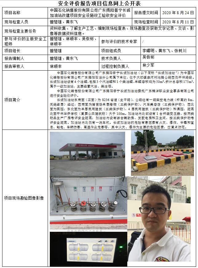 中国石化销售股份有限公司广东揭阳普宁长诚加油站改建项目安全设施竣工验收安全评价