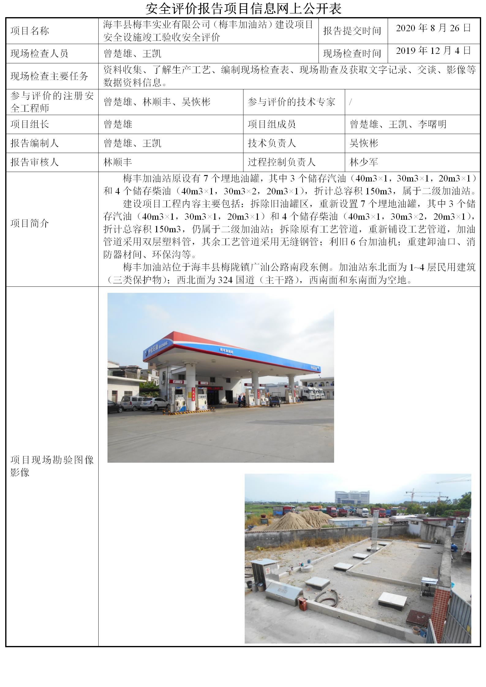 海丰县梅丰实业有限公司(梅丰加油站)建设项目安全设施竣工验收安全评价