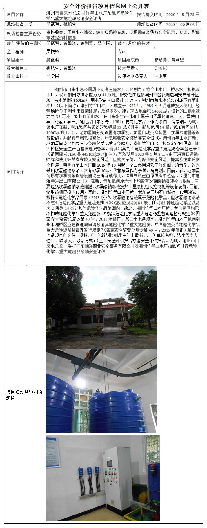 潮州市自来水总公司竹竿山水厂加氯间危险化学品重大危险源核销安全评估