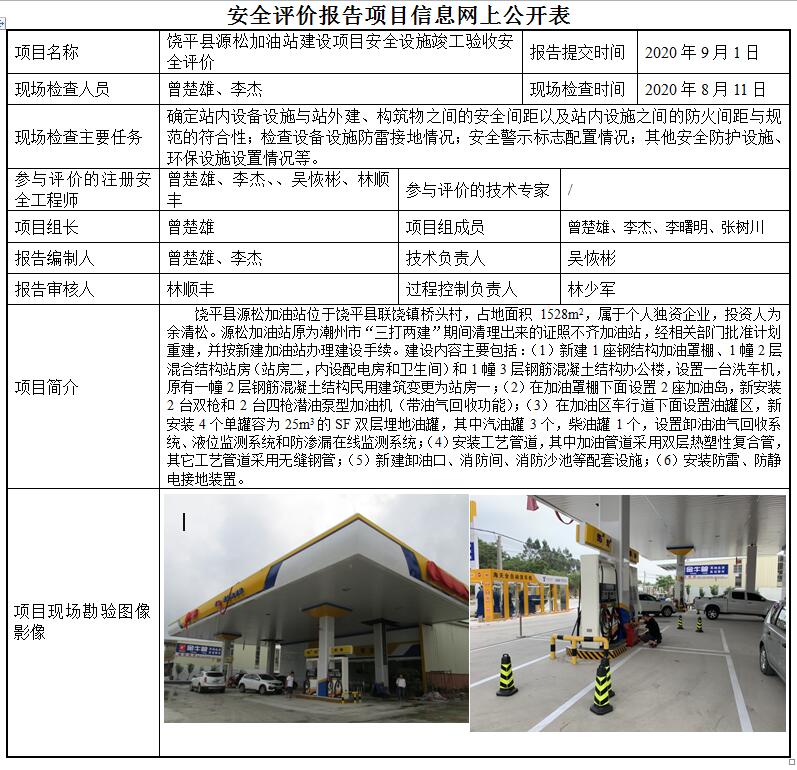 饶平县源松加油站建设项目安全设施竣工验收安全评价