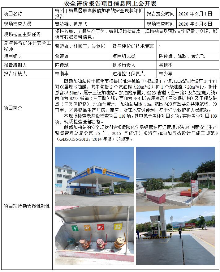 梅州市梅县区雁洋麒麟加油站安全现状评价