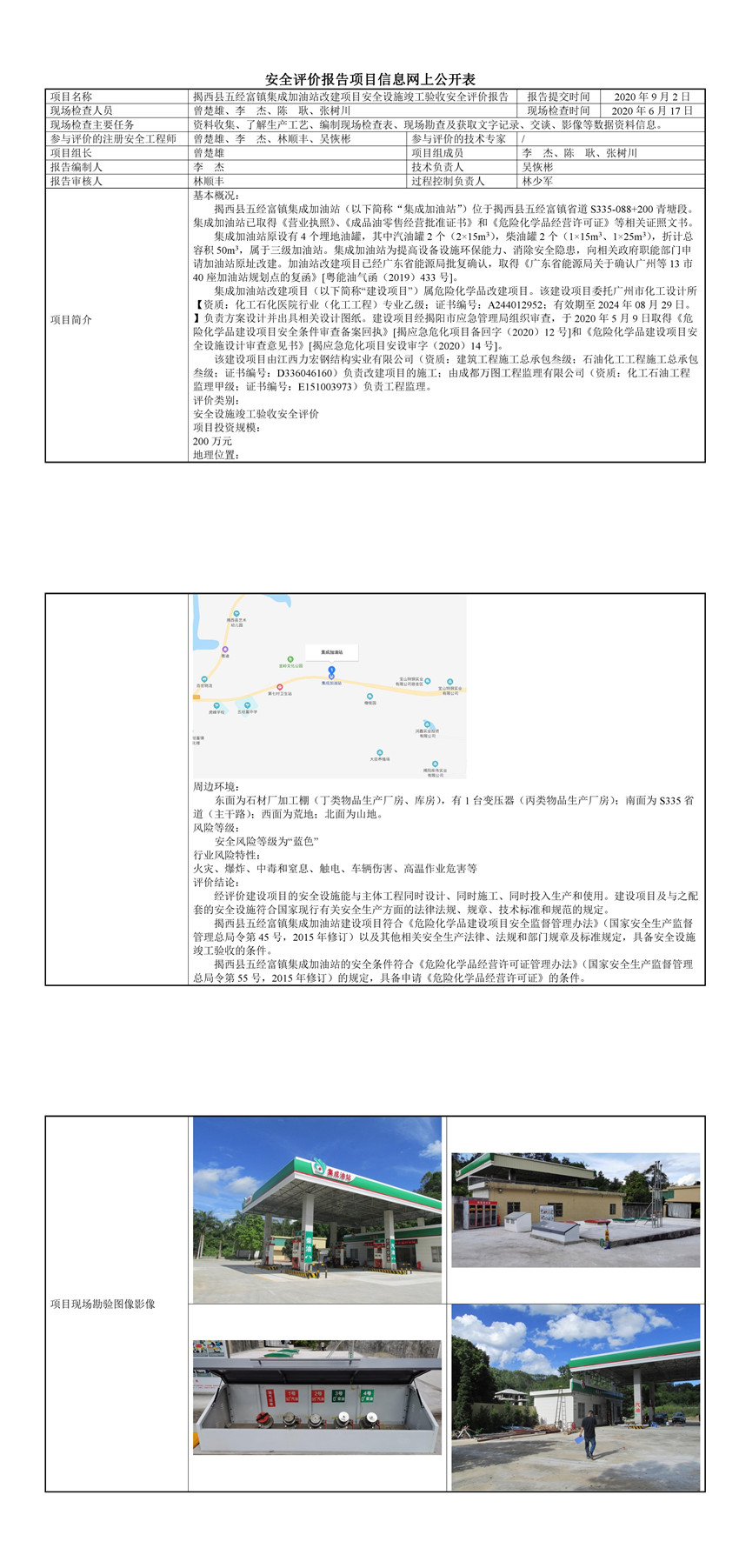 揭西县五经富镇集成加油站改建项目安全设施竣工验收安全评价