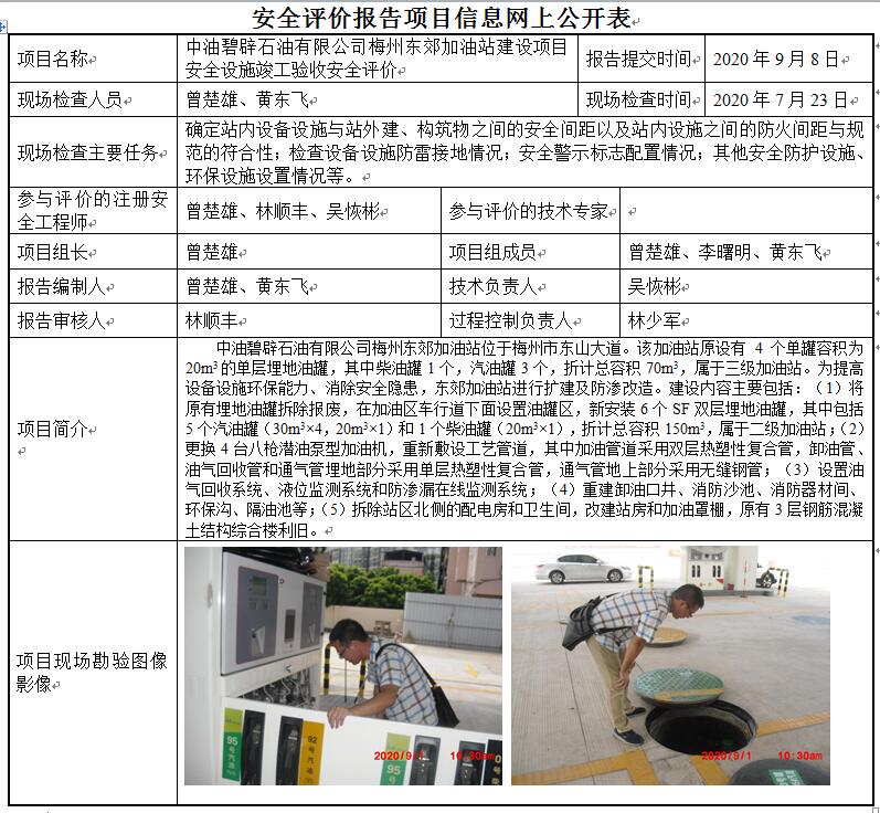 中油碧辟石油有限公司梅州东郊加油站建设项目安全设施竣工验收安全评价