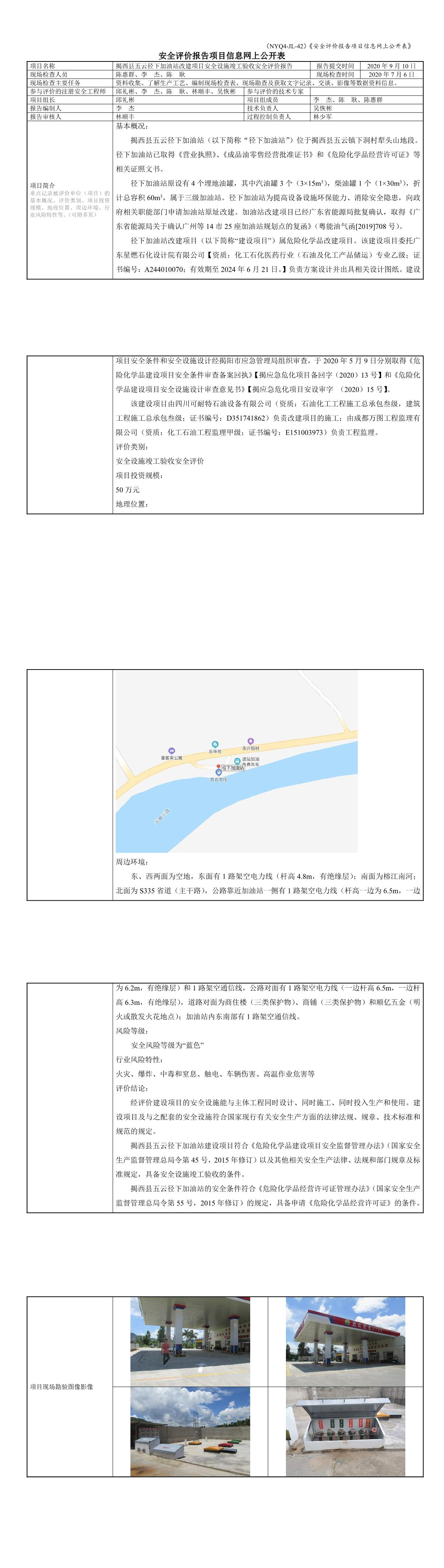 揭西县五云径下加油站改建项目安全设施竣工验收安全评价