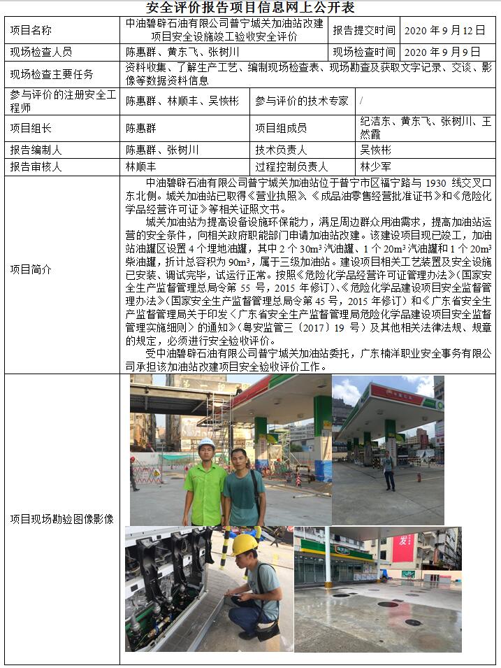 中油碧辟石油有限公司普宁城关加油站改建项目安全设施竣工验收安全评价