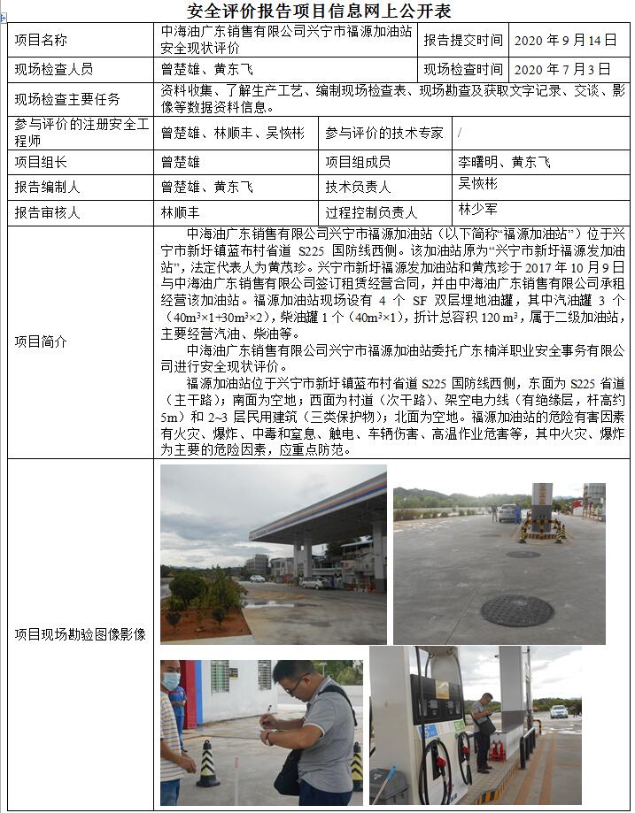 中海油广东销售有限公司兴宁市福源加油站安全现状评价